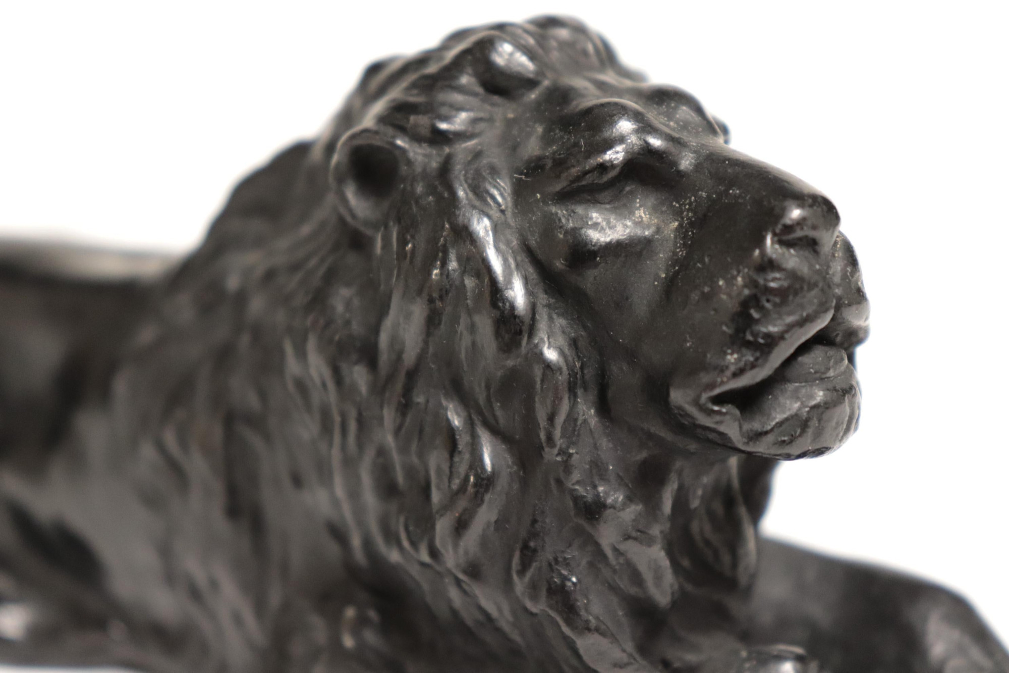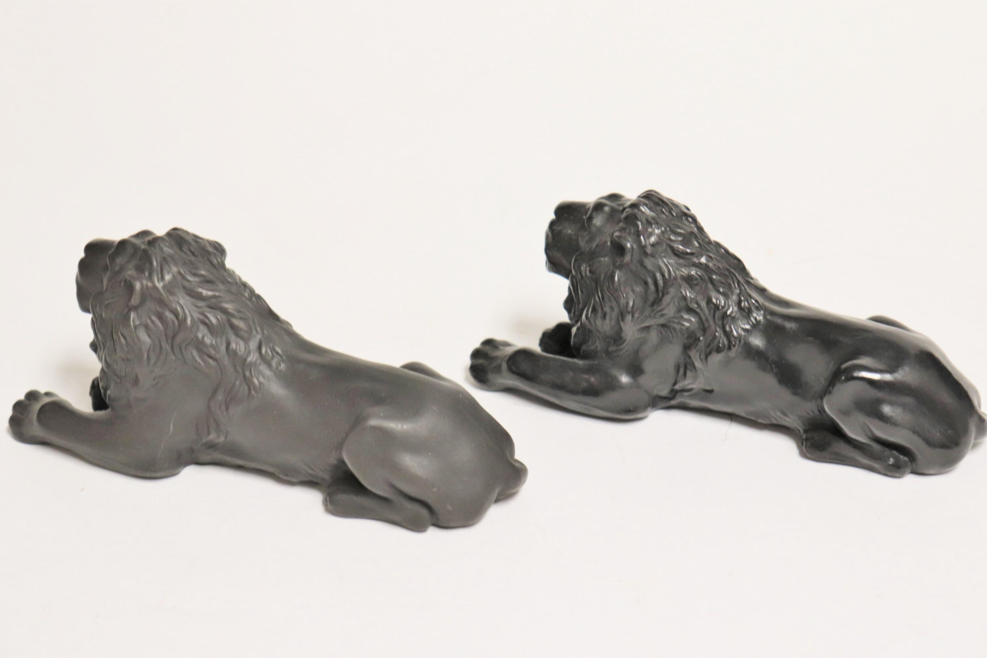- 2 Black Basalt Wedgwood Recumbent Lions, one glazed, one matte, impressed mark (2 pc.)